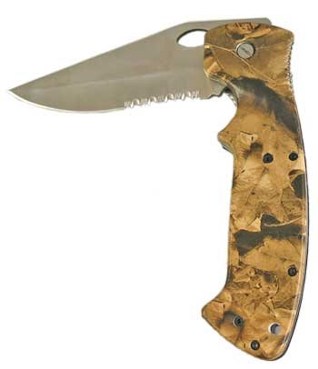 Folding Knife With Camouflage Tree Look Handle And Half Serrated Blade 5.5" Overview