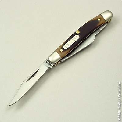 "SCHRADE" JUNIOR POCKET KNIFE 3 Blades. Length Closed: 2-3/4" Clip, Sheep Foot & Pen. Junior Pocket Knife, Unbreakable Saw Cut Delrin Handles. Special Analysis High Carbon Steel Blades. Solid Brass Linings & Nickel Silver Bolsters.