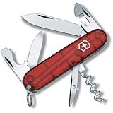 Victorinox Swissarmy Spartan Softgrip Knife, RubyLarge blade; Small blade; Can opener with small screwdriver; Bottle opener with large screwdriver & wire stripper; Reamer with sewing eye; Phillips screwdriver; Toothpick; Tweezers; Key ring; Life time warranty; Size: 91 mm | 3 1/2 inch.