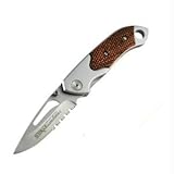Let's have a look at our Schrade SES4 Essentials Folding Knife with 40% Serrated Drop point Blade, Liner Lock Handle with Hauli Wood Inlay features