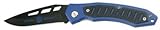 4 1/2" closed liner locking tactical folder is nice with the adjustable tension setting to fit you as the person using the knife. Has a black coated stainless steel blade with blue composition handle scales with black slotted grip overlay. It has a lanyard hole for ease of use and a metal clip for easy carrying on your belt. Great overall tactical folder.