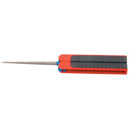 FOLDING DIAMOND SHARPENING ROD The tapered Rat Tail shape of this 3.5 long fine grit diamond sharpener makes it ideal for sharpening straight, serrated or tool blades. Rod folds into the rubber overmolded, comfort-grip, non-slip handle. Closed size 1 X 4.5.
