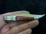 This is a beautiful new in box, 1 Rite Edge Spanish Toothpick folding pocket knife, with special cutting stainless steel blade, polished metal body. If you are looking for a small knife that is well built this is an excellent choice. It has a designer wood handle with brass pins to attach the wood to the metal. It is beautifully detailed with a special design on the both ends of the knife body as seen in the picture. You see me holding it in the picture, opens easily, and will last for years. It measures 4 inches closed and 7 inches open. It comes with my personal garantee for 1 year from the date of your purchase. If it does not perform the way you like, whatever the reason, I will replace it or a comparable for free, you just pay the shipping. Fair enough?